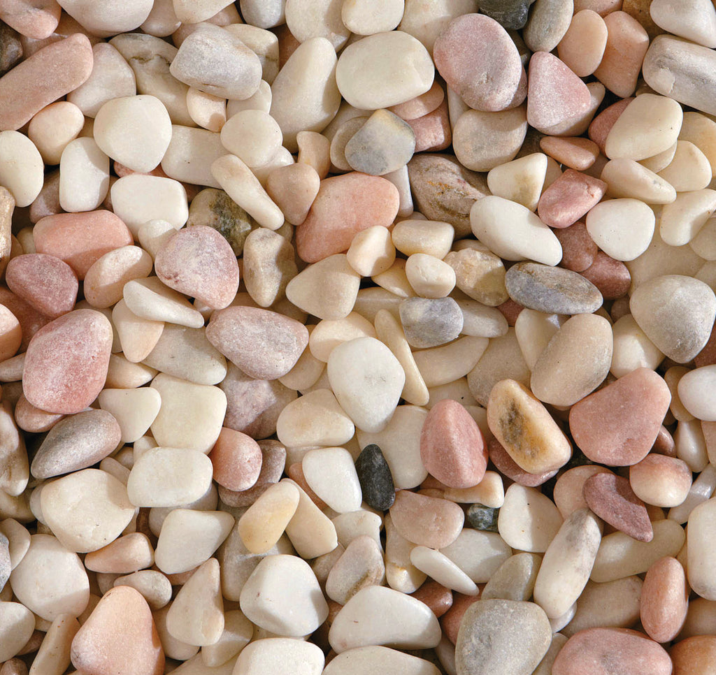 Rose Pebbles are natural stone pebbles in a mix of pretty cream, greys and pinks. A premium decorative aggregate that can be used on garden borders, property perimeters, water features, artificial streams, and pond edges. Perfect for cottage gardens, as well as contemporary gardens. Long lasting and low maintenance. Allows natural drainage of rainwater, compared to hard surfaces.