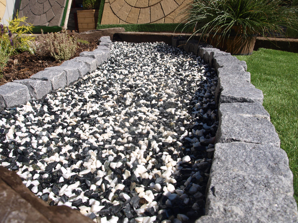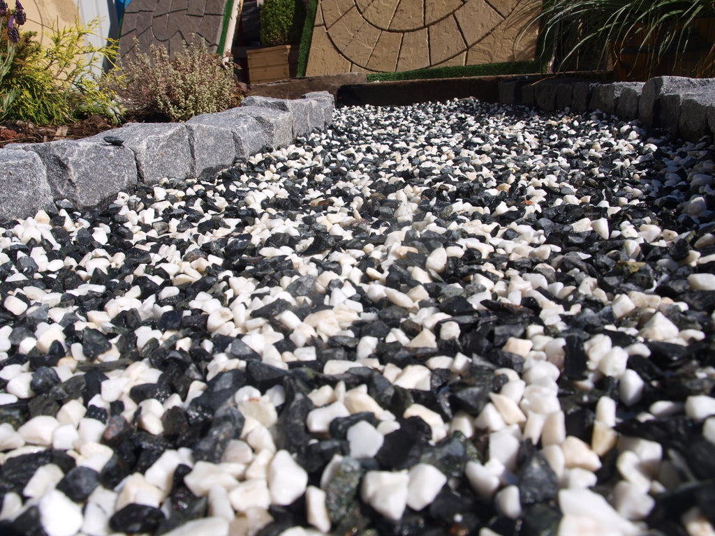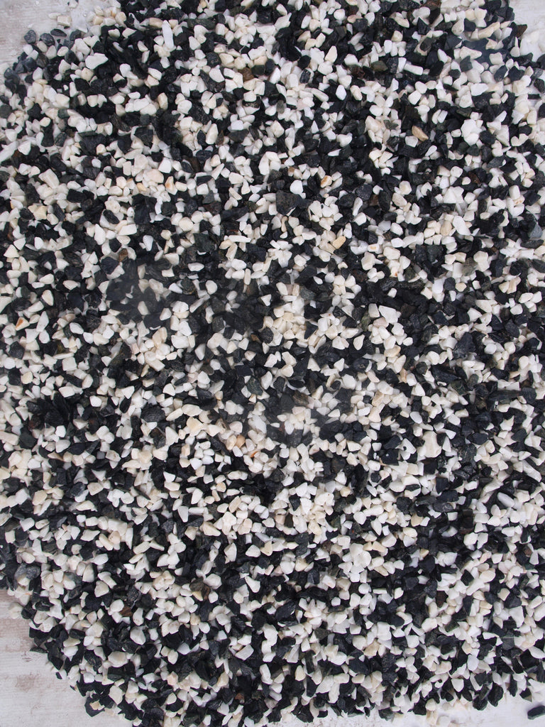 Tudor marble is a unique stone aggregate for driveways, garden borders, patios and paths. A perfect choice for gardens of mock Tudor properties or modern homes in shades from white, to grey and black. Long lasting and low maintenance. Allows natural drainage of rainwater, compared to hard surfaces.
